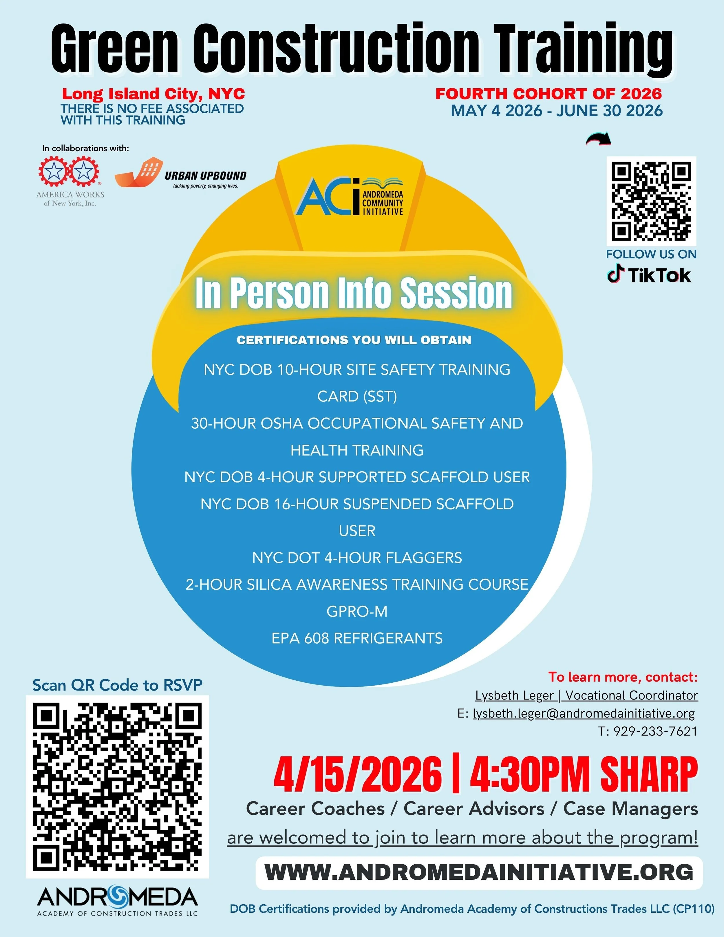 ACI is A Workforce Development Program for NY’s Construction Industry bridging the gap in the construction field between companies in need of workers and individuals seeking quality, family-sustaining employment.ACI is now collaborating with Urban Upbound and America Works for an upcoming virtual info session about their incoming Green Construction Training Program